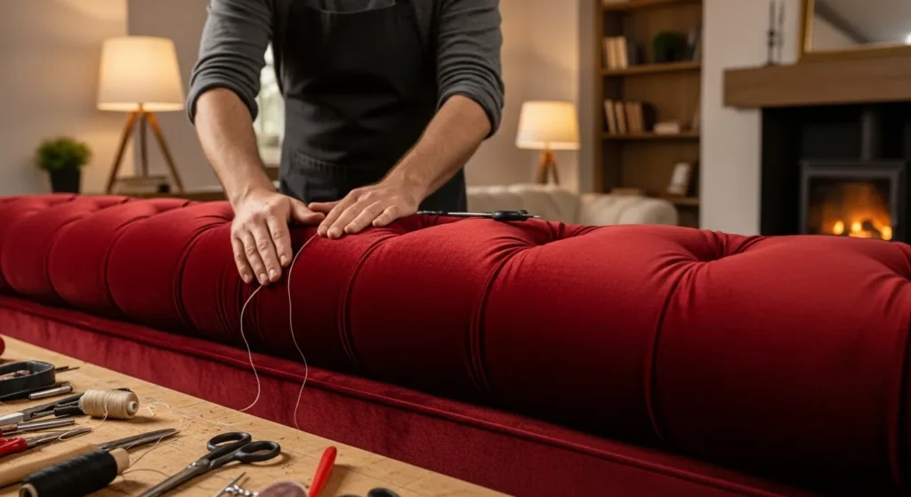 The one main reason people end up hiring us is that we offer free pickup and delivery service. Furthermore, every stitch is double-checked with ±1mm tolerance fitting. Fabrics are tested against 90% humidity exposure, which is perfect for the city’s climate. Upholstery reduces ambient noise by 15-20 decibels. This makes your sofas and chairs more comfortable for work-from-home or media rooms. We fill your cushions with HR-grade foam. The kind that is tested for 100,000+ seating cycles. You can choose from 48+ fabric collections. We offer Italian velvet to Scandinavian cotton. Reupholstery saves cost, too. Our average client spends way less per sofa vs. AED 4,500+ for new retail options. We keep you informed before dismantling, while repairing, and for fabric selections, to the final stitching.